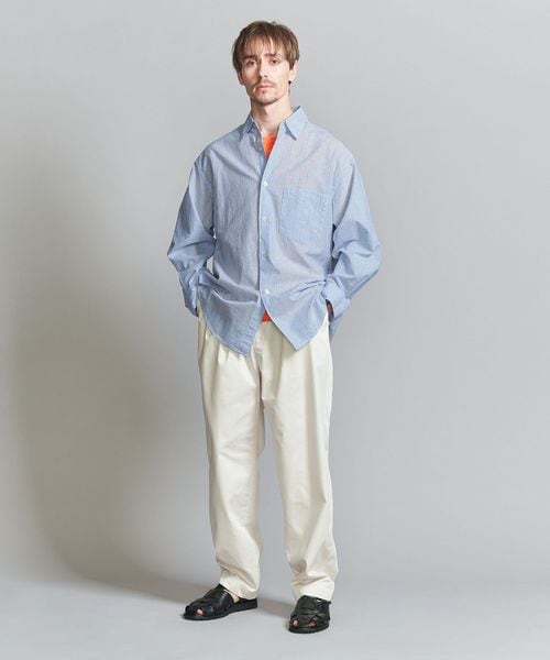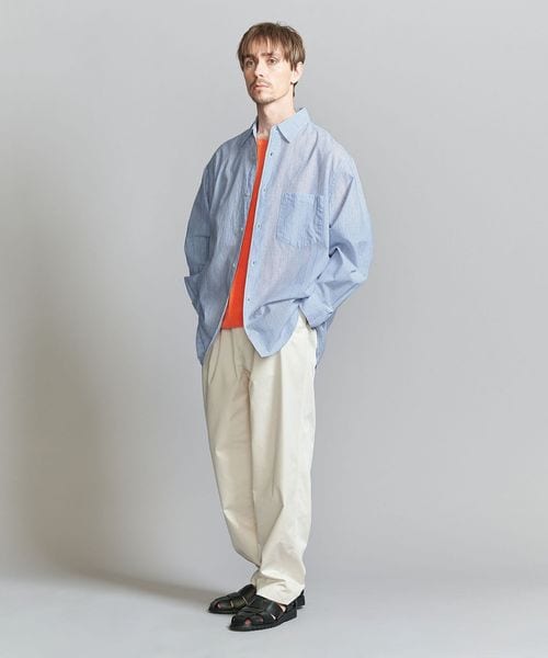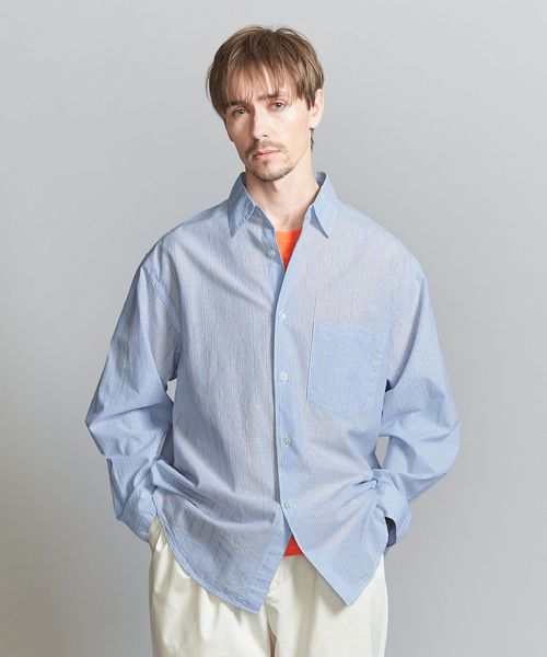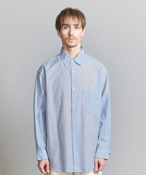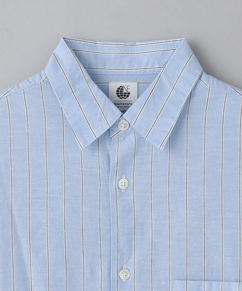 <one BEAUTY&YOUTH> コットンシルク ストライプ レギュラー グランデシャツ