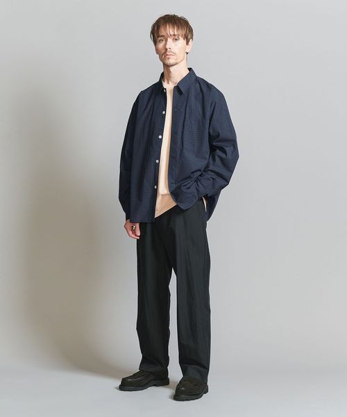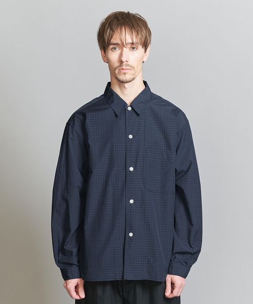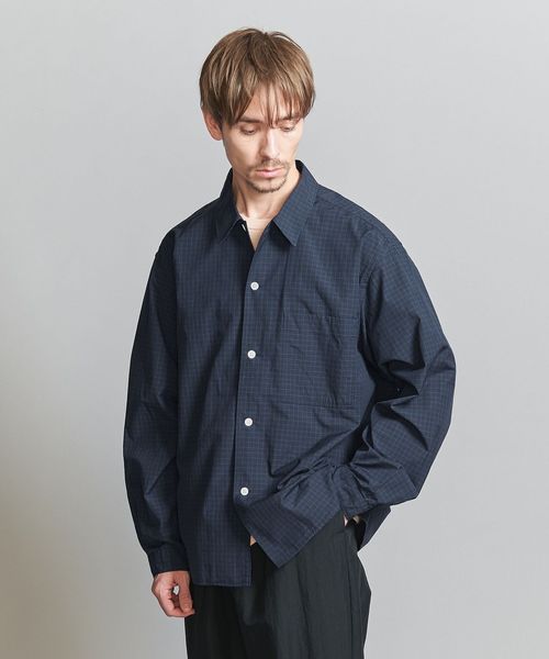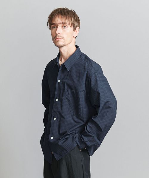<one BEAUTY&YOUTH> コットン ブロード チェック キャンプカラー フォルムシャツ