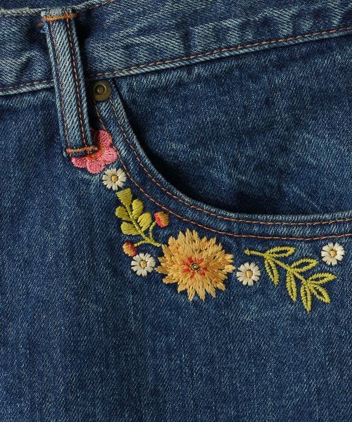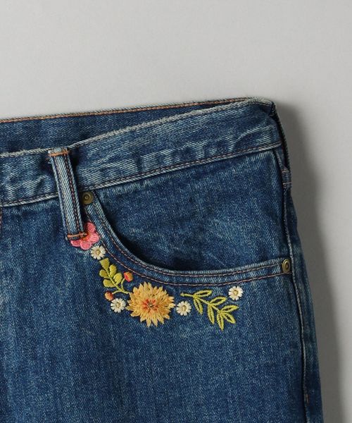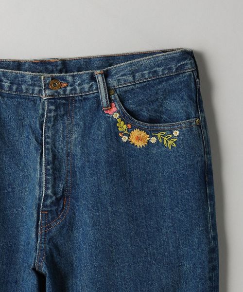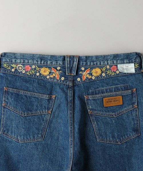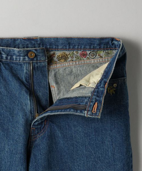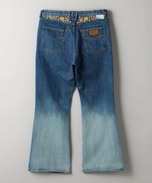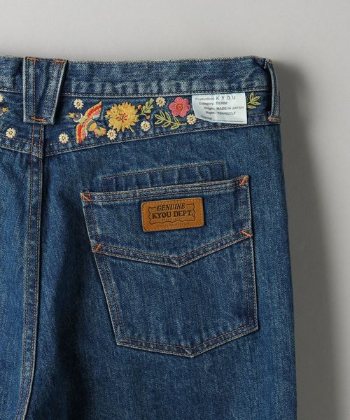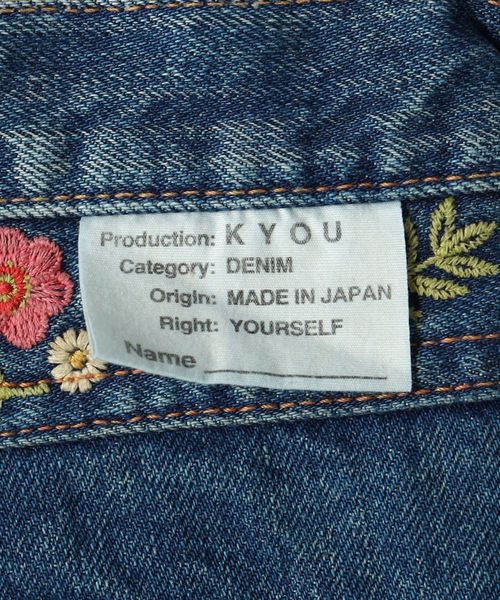 今シーズンより登場するフレアデニムに通常よりハードな加工を施し、<KYOU>のアイコンでもある刺繍をフロントポケットとバックヨークにプラス。