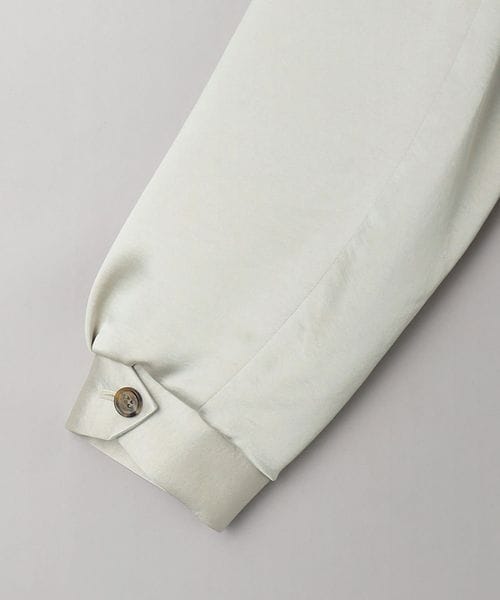 刺繍は手刺し風の柔らかなタッチを特殊ミシンで表現、ヴィンテージ加工を施した程よい光沢が特徴のドレープサテン生地を使用。