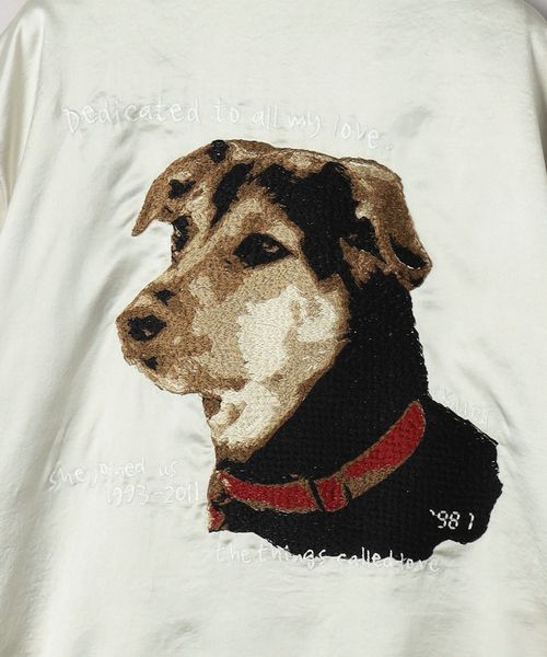 「”LOVE” FOR KAARA」は共に育った友人でもあり家族でもある故犬カーラに捧げるヴィンテージ調のスカジャン。