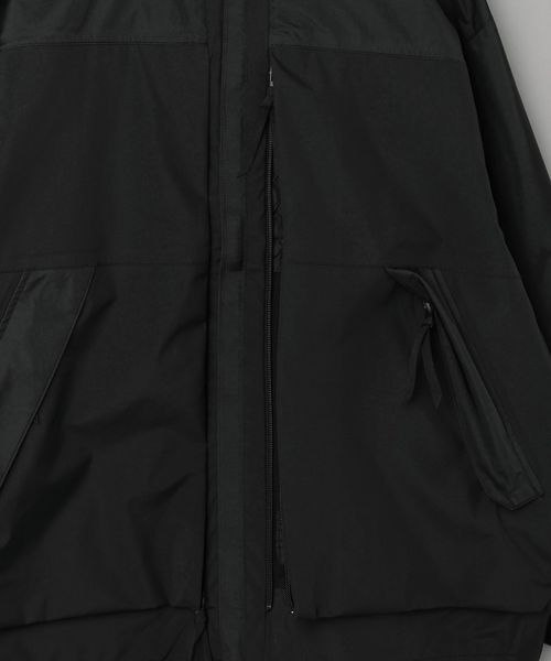 クラシックなマウンテンパーカ―のデザインディテールを取り入れたシンプルでソリッドな表情でありながらフロント両脇のファスナーを開けると収納力の高い多数のポケットを配備。
