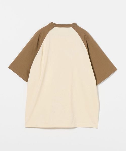 ベージュベースの配色が柔らかい印象を与えるラグランTシャツ。