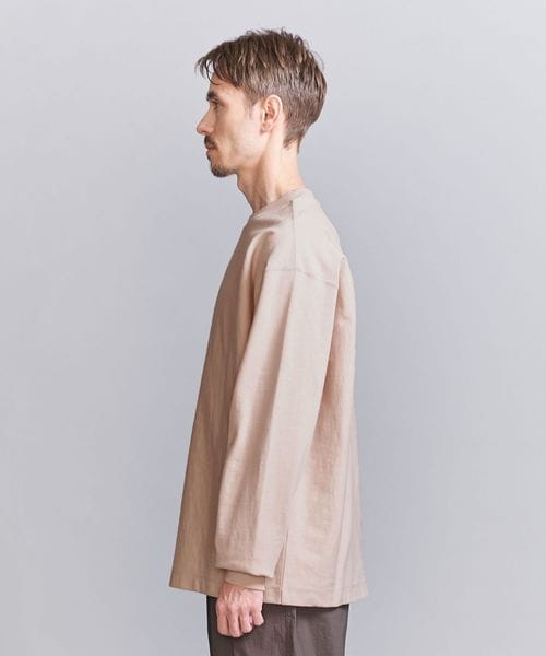 オープンエンド糸のドライタッチな質感に加え、柔軟剤を使用しない、仕上げ方法で生地を洗っているので、脱脂感のあるドライな質感を生み出しています。