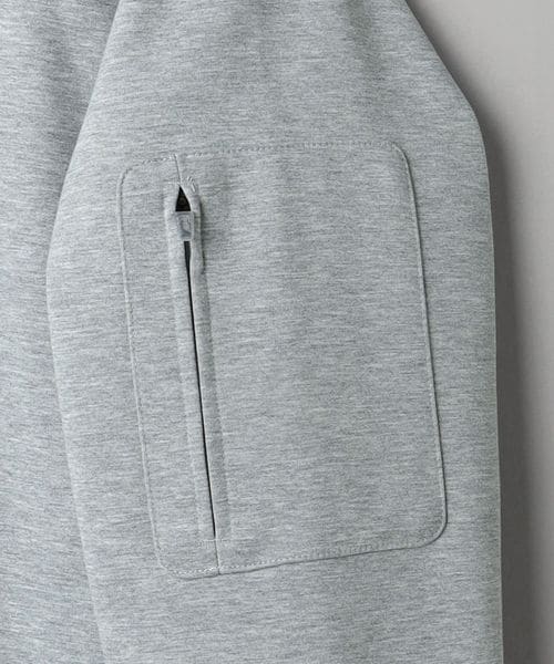 ほどよいハリ感と滑らかな肌触りが魅力のダンボールニット素材を使用したブルゾン。