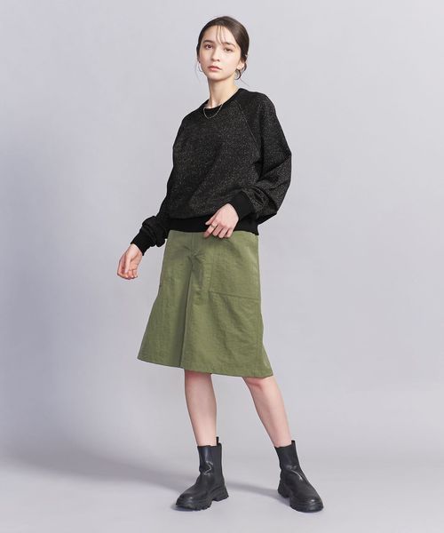 煌めくラメが特徴の丸味のあるシルエットのラグランスウェットクルーネック