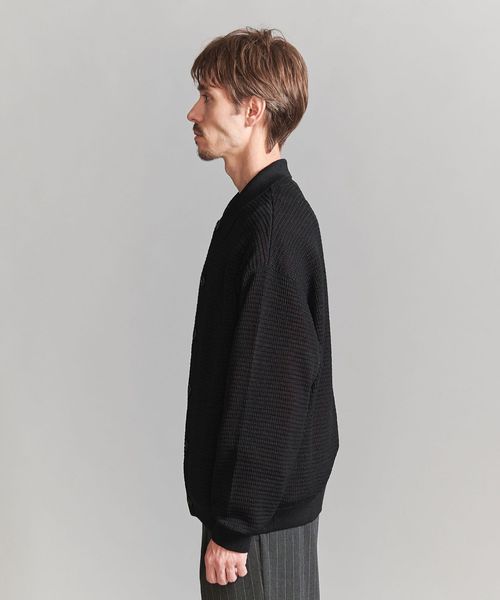 ざっくりとして立体的な編柄が特徴的なニットブルゾン。