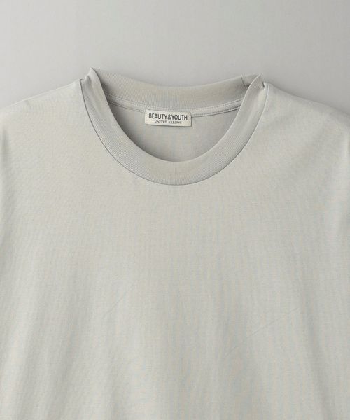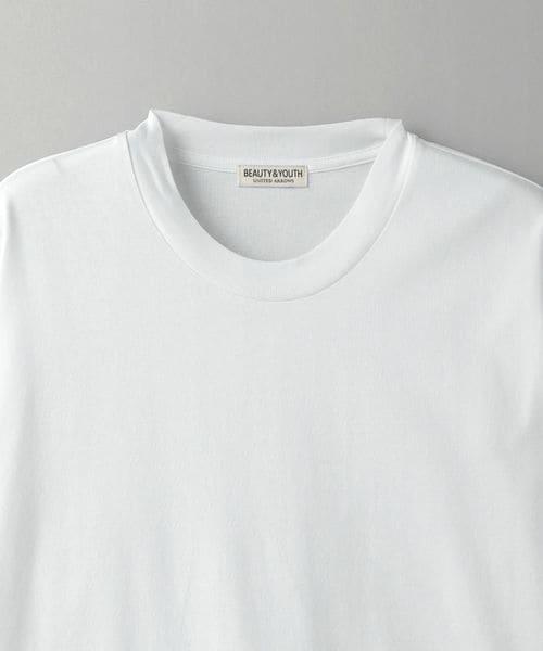 糸の段階でガス焼きを施し毛羽を取り除いて編み立てた、クリアな表情が特徴のコットン100%天竺素材を採用。