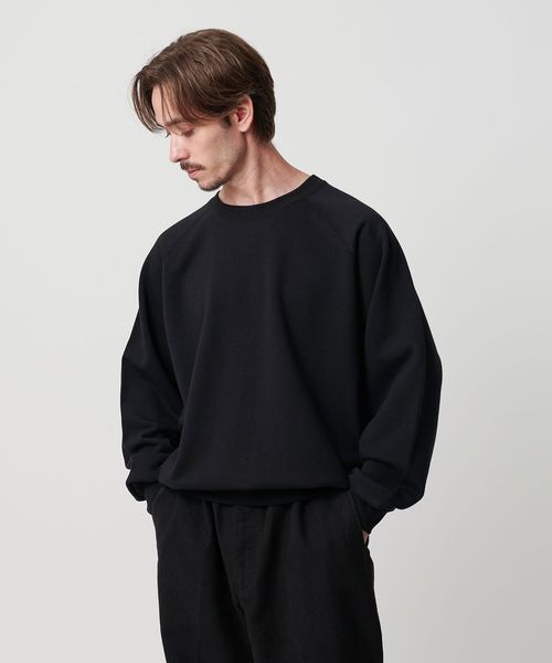 丸味のあるシルエットが特徴のラグランスウェットクルーネック