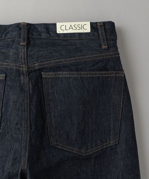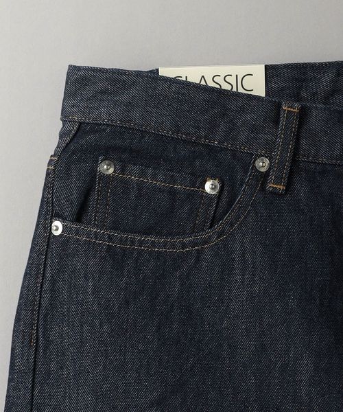 さらに洗いの工程で柔軟剤を入れず、カリっと硬さを残した仕上げにしているのもキレイ目デニムとしてはいていただけるポイントになっております。