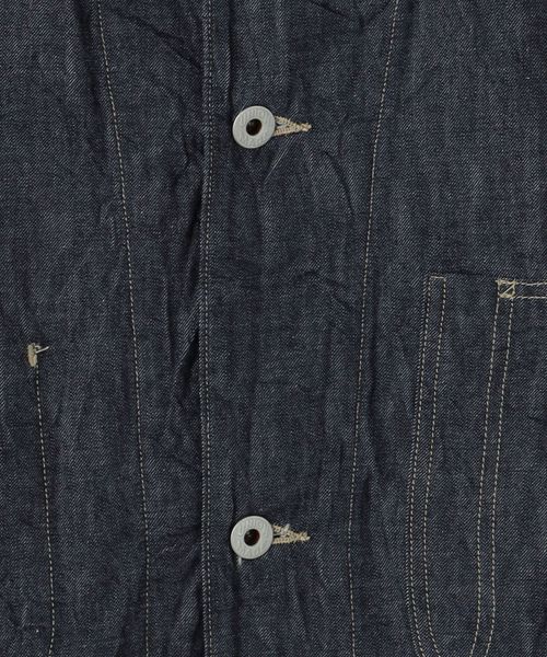 綾目を立たせ、柔らかく軽い自然なムラ感が特徴のライトオンスデニム生地を用いたカバーオール。