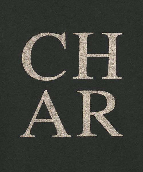 "CHARCOAL"の文字をフロントと背面に分けてデザイン。