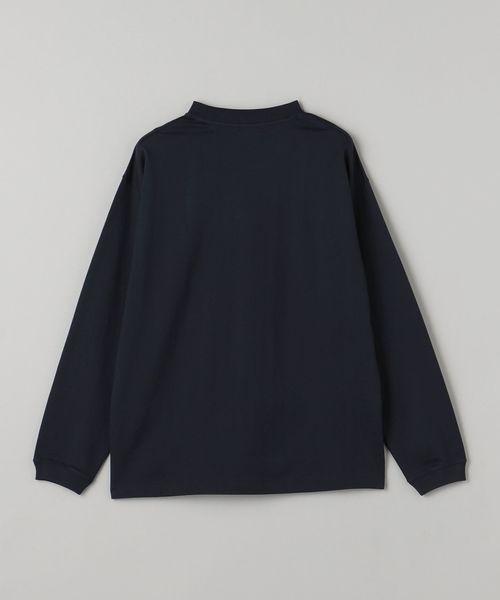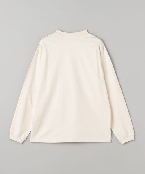 首に沿う丸みのあるカーブと太目の衿でモックネックのような雰囲気のあるクルーネックが特徴。