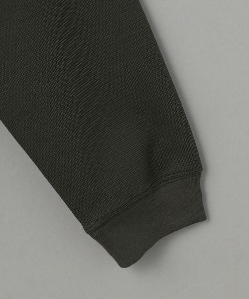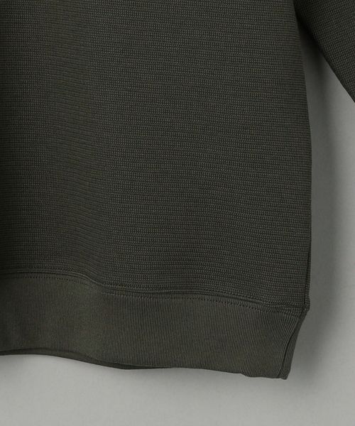 編み柄がニットのような表情を持ち、裏面はジャージのように滑らかな肌当たりのダブルフェイス素材を使用しています。
