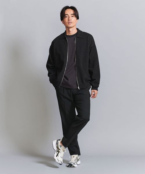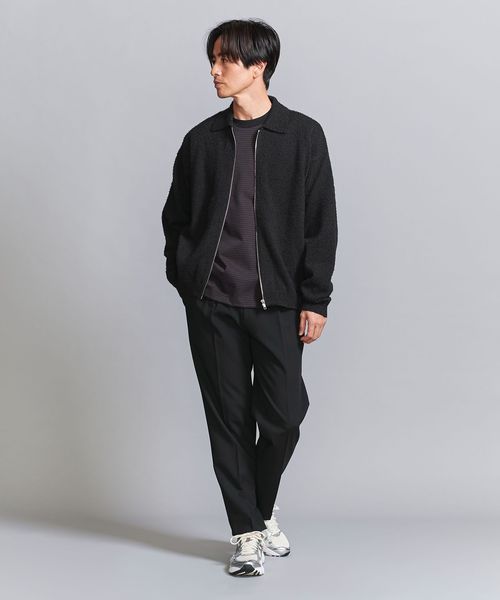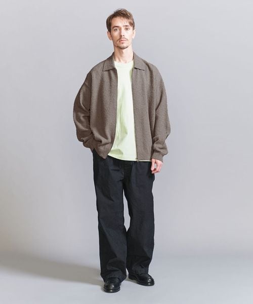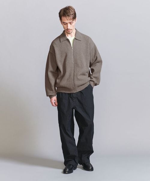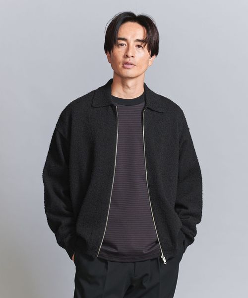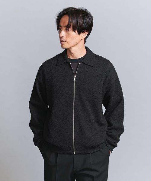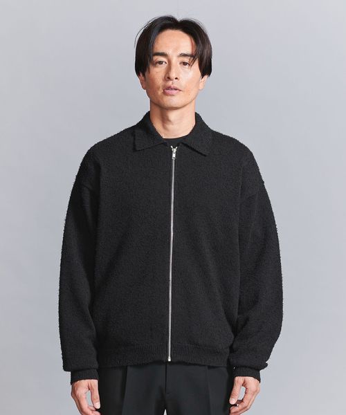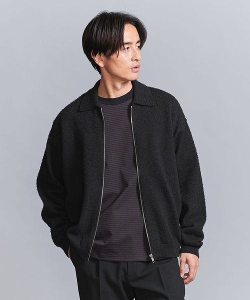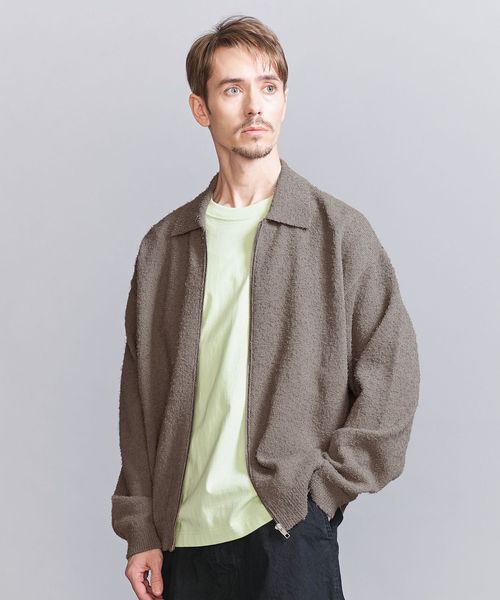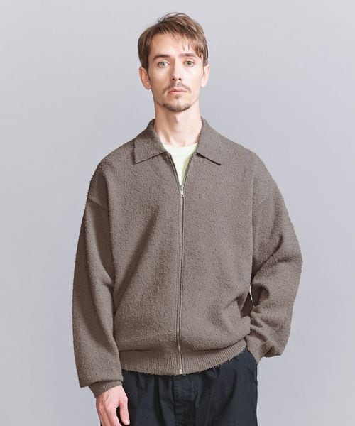 カーディガン感覚で着られるニット仕立てのジップブルゾン。