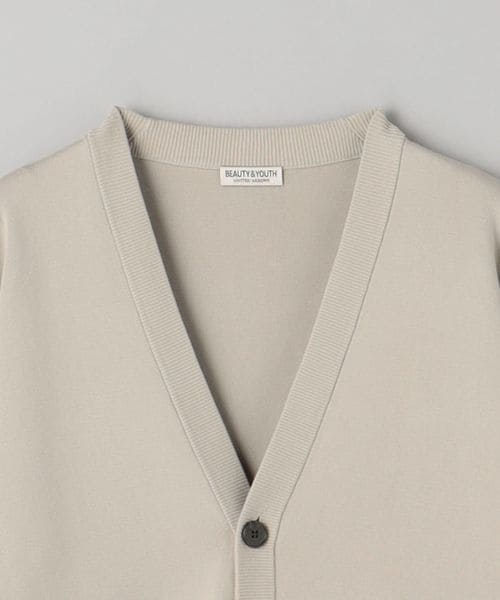 ガスコットンを使用したクリーンなミラノリブ編みVネックカーディガン。