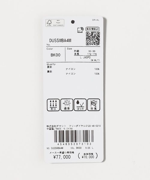 品名:DESCENTE AR L/W SL H/CT 品番:12255990440