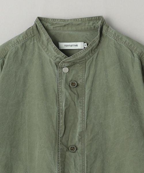 コットンリップストップ素材を使用したスタンドカラーのシャツジャケットです。