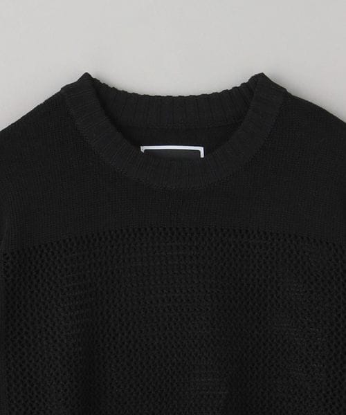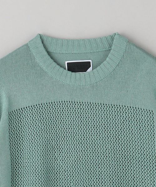 フロントを極端に目抜きで編み上げたシースルーニット。
