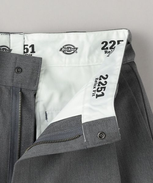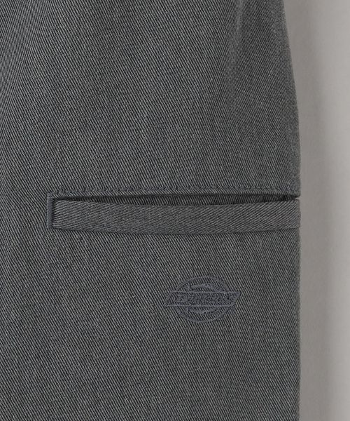 右太腿裏のハンマーポケットには、<Dickies>ロゴを生地と同色の糸でエンブロイド、ウエストにはタグを配置。