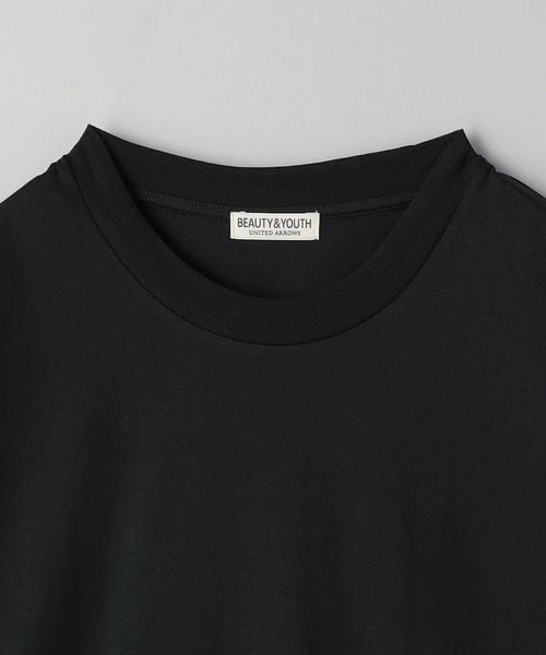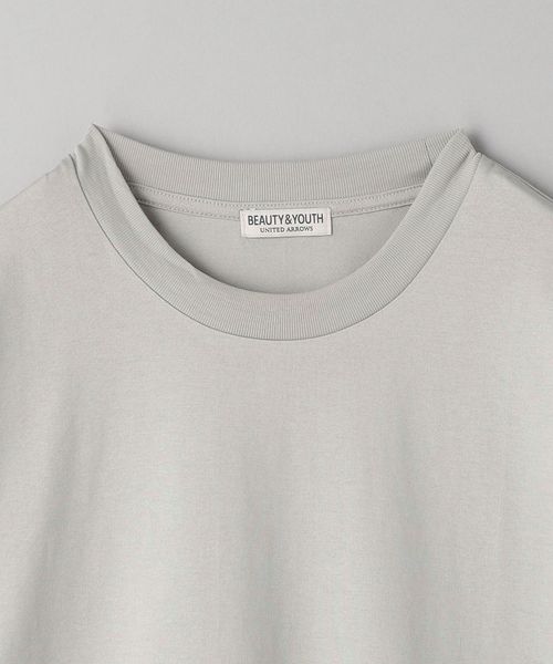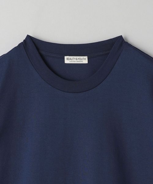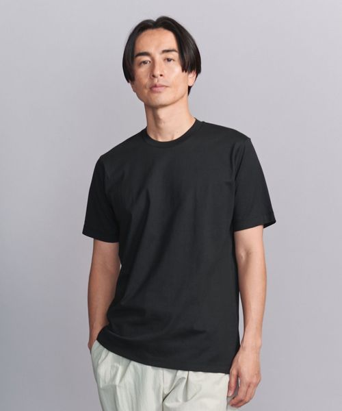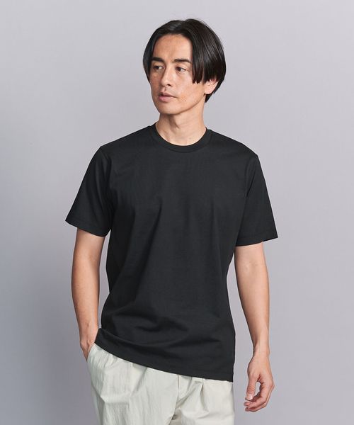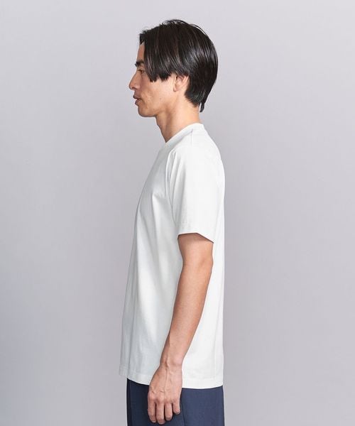 糸の段階でガス焼きを施し毛羽を取り除いて編み立てた、クリアな表情が特徴のコットン100%天竺素材を使用。