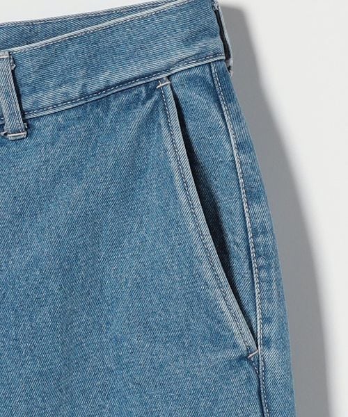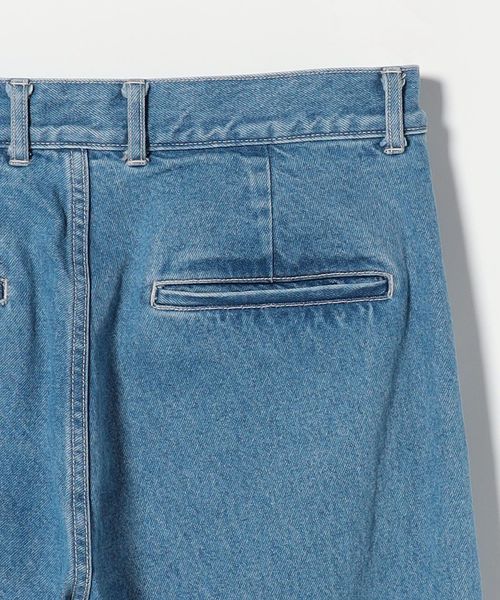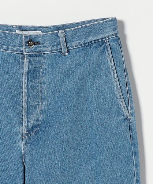 カジュアルな風合いのデニム生地にあえてスラックスのパターンを落とし込んだパンツです。