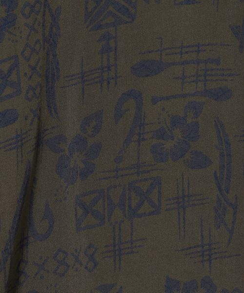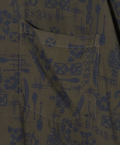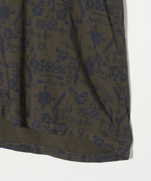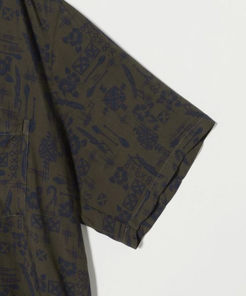 リゾート感が高まる総柄ながら、別注で墨黒にオーバーダイし都会的な印象に仕上がりました。