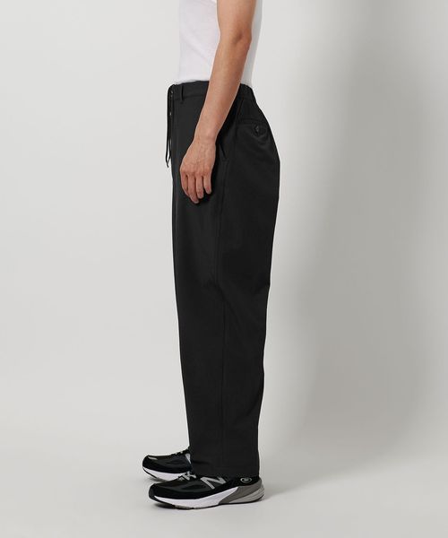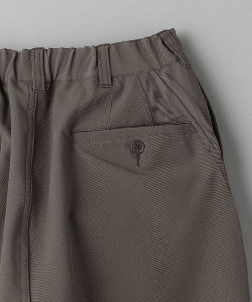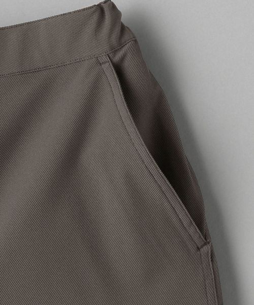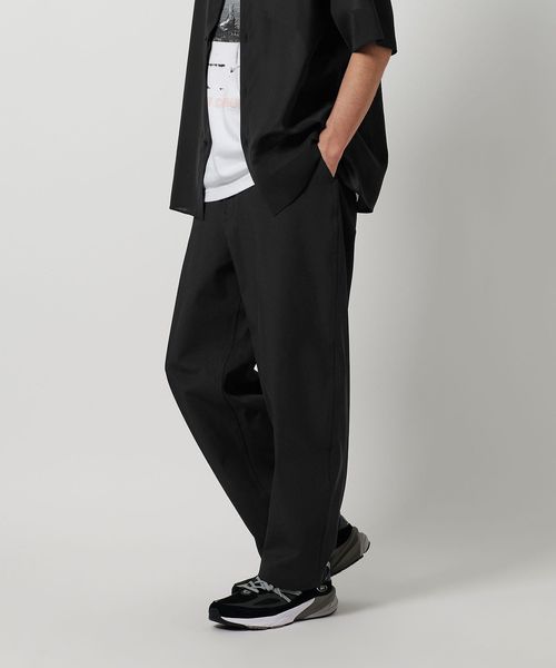 ポリエステルベースのツイル生地を使用した、ゆるやかなワイドテーパードシルエットのパンツ。