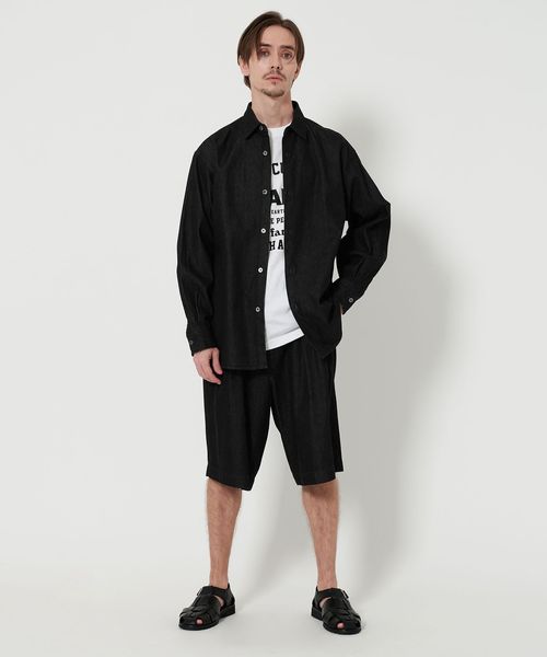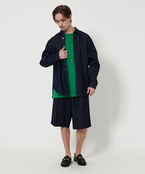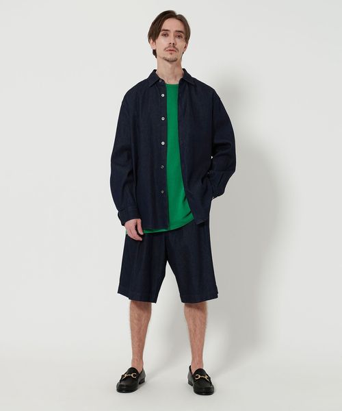 同生地を使用したデニムショーツとセットアップでのスタイリングが特におすすめです。