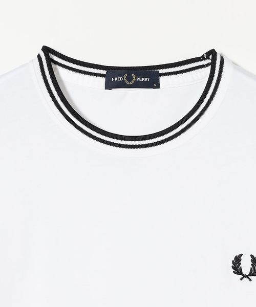 フレッドペリーの象徴である月桂樹のロゴを胸元に配し、ティップラインを首元と袖口にあしらったクルーネックTシャツ。