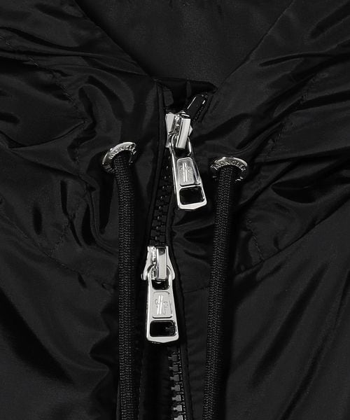 フードにトリコロールカラーのリボンをあしらい、<MONCLER>の伝統に敬意を表しています。