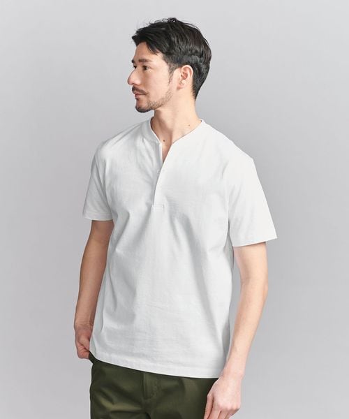 スマートにインナーや一枚着として着こなせるスキッパーヘンリーネックTシャツです。