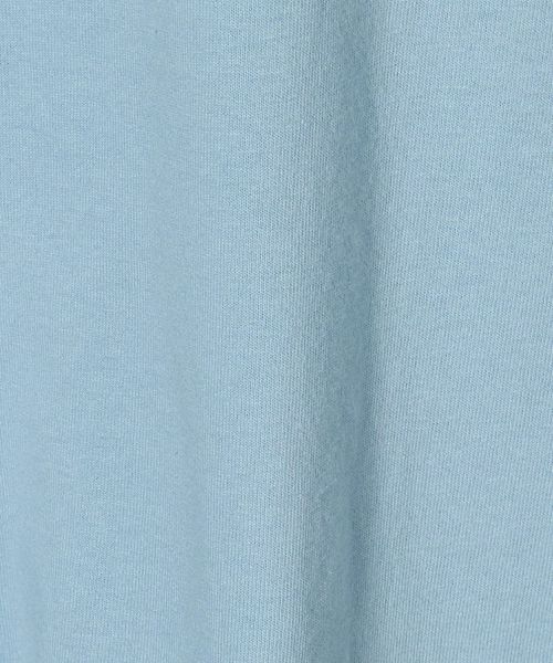 鮮やかなブルーに胸元と背面のアートワークが目を引くTシャツ。