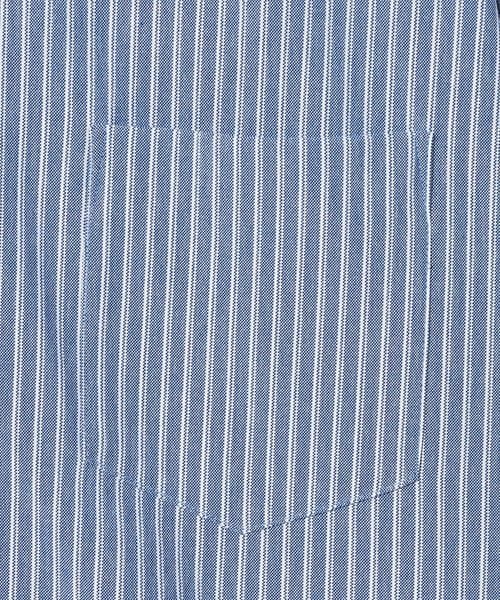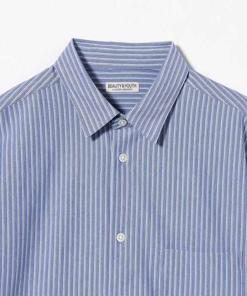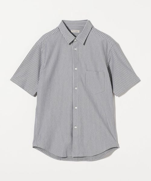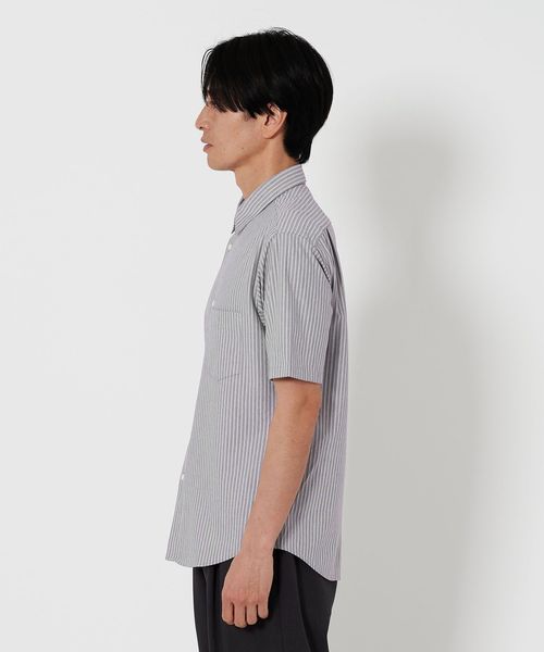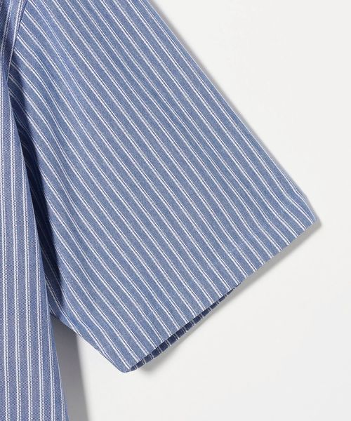 上品で清潔感のある雰囲気の半袖ストライプシャツ。