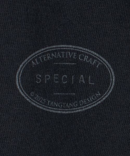 前後に配されたレタードが目を惹くクルーネックTシャツ。
