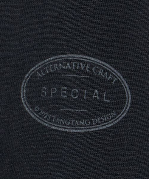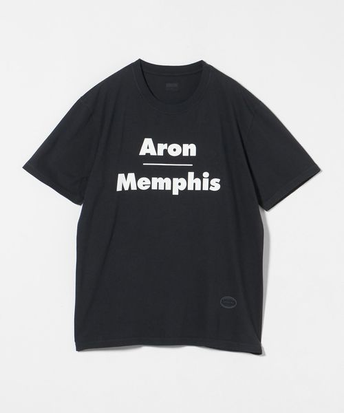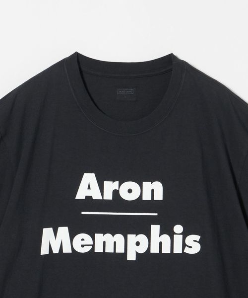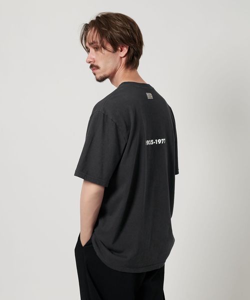 前後に配されたレタードが目を惹くクルーネックTシャツ。