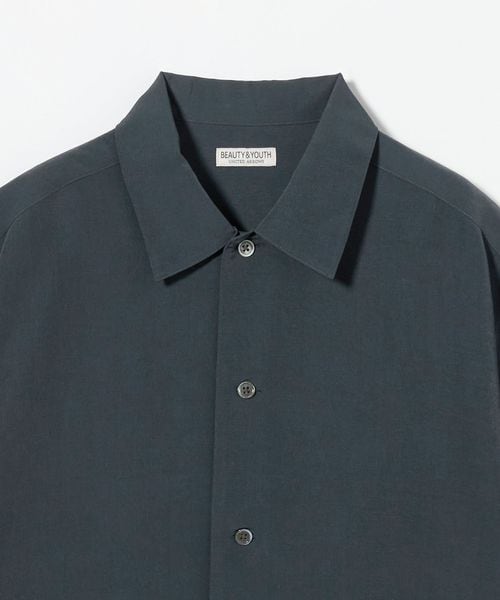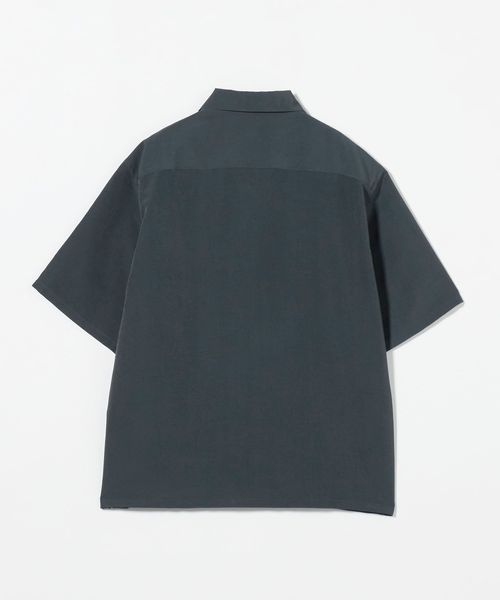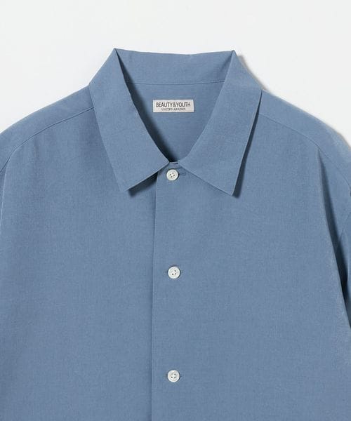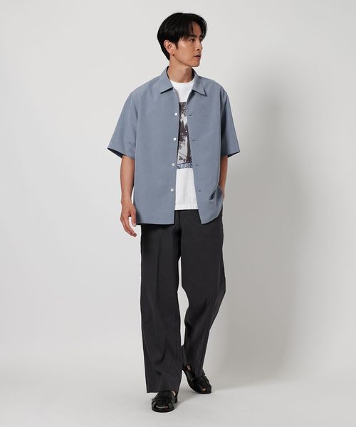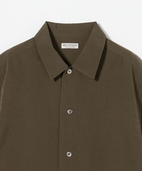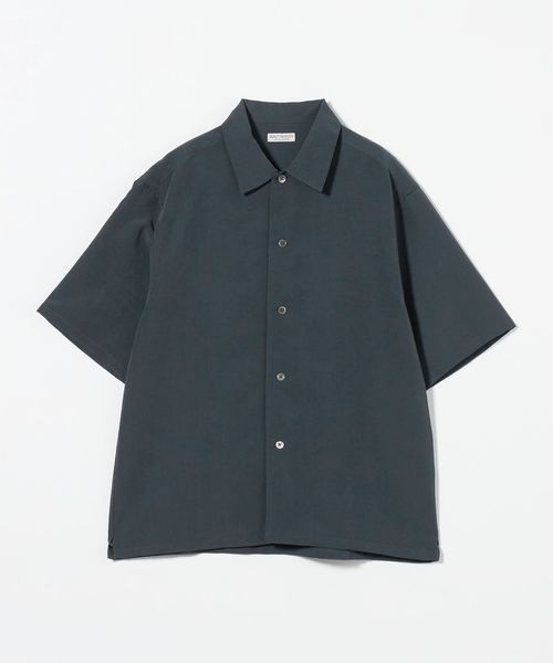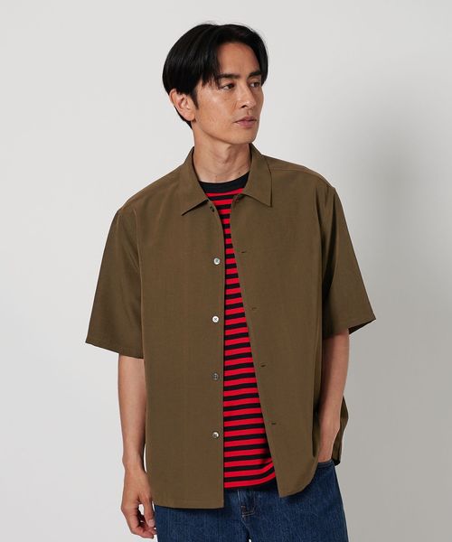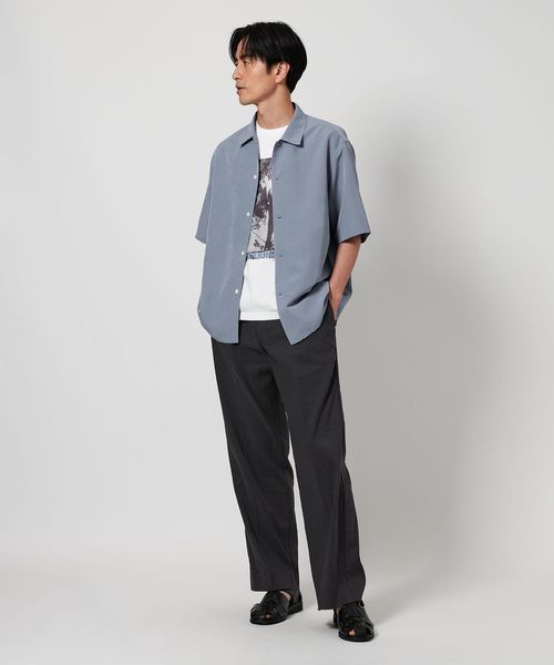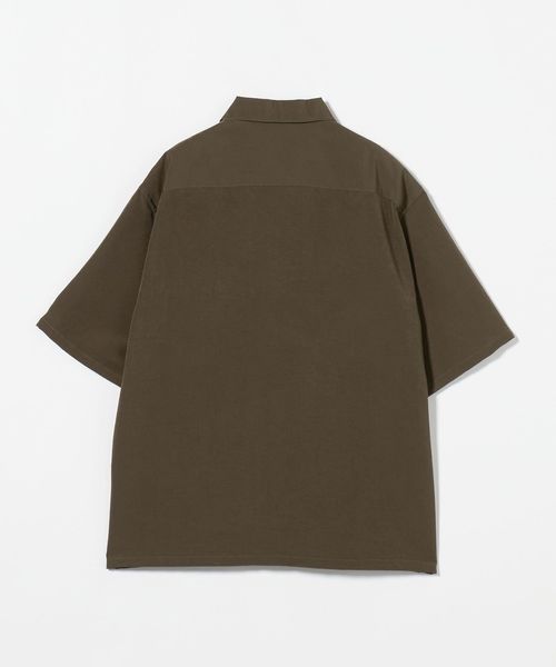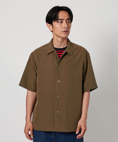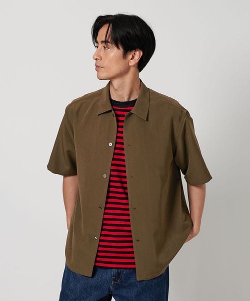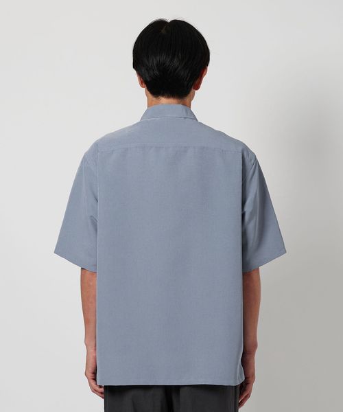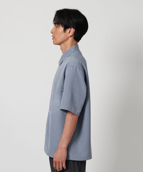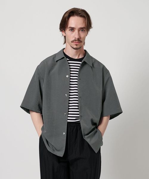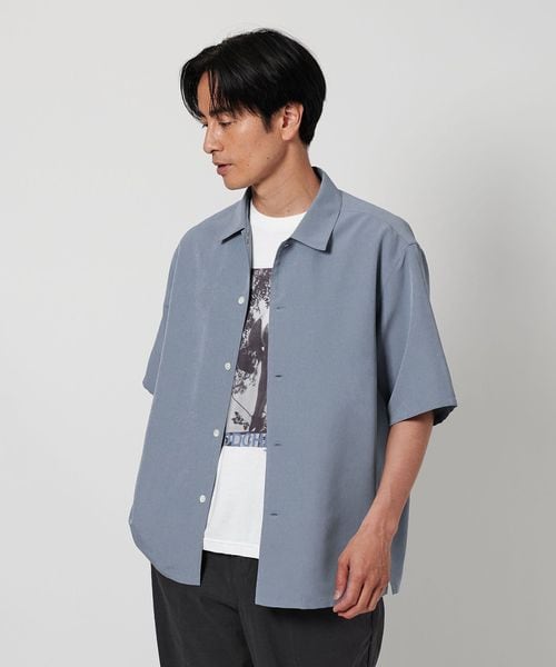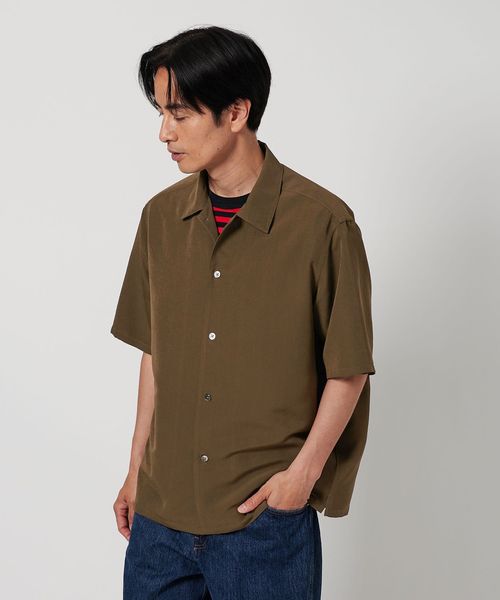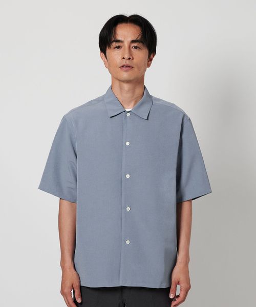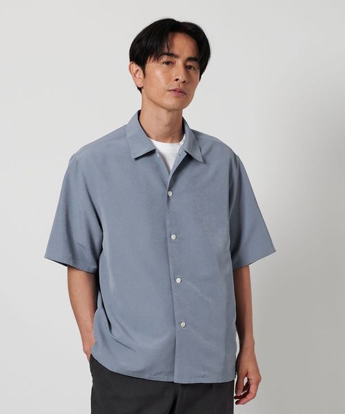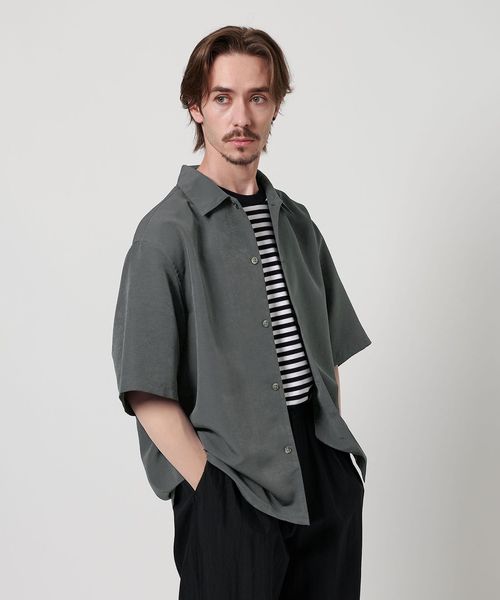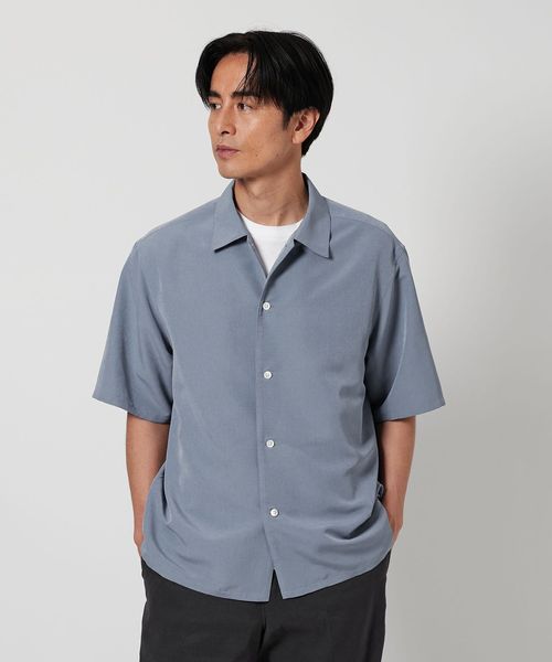 ミニマルなデザインながらも、シルクのような質感がモダンな雰囲気を放つ半袖シャツ。
