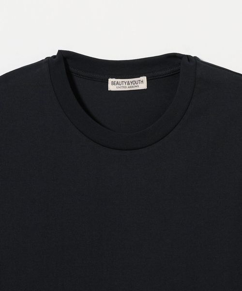 糸の段階でガス焼きを施し毛羽を取り除いて編み立てた、クリアな表情が特徴のコットン100%天竺素材を使用。