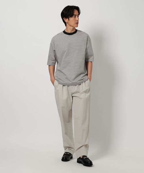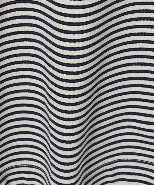 衿リブの色と同じ色のボトムスで合わせていただくと、ボーダーのキャッチーさもありながら全体的にまとまったスタイリングとなりおススメです。