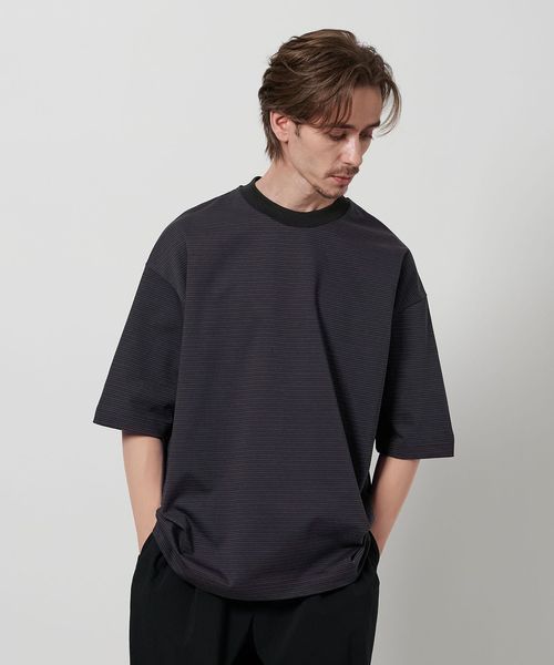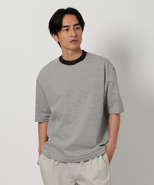 非常に細かいピッチとニュアンスのきいた配色が特徴のボーダー柄カットソー。