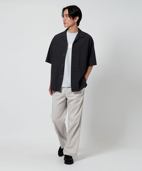 同素材の半袖シャツ合わせもおすすめですが、小奇麗なTシャツを合わせたスタイルが、クリーンで大人な雰囲気にまとまります。