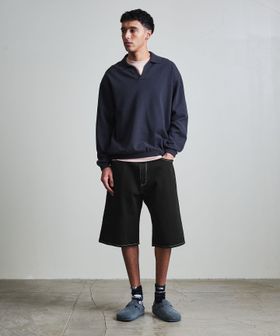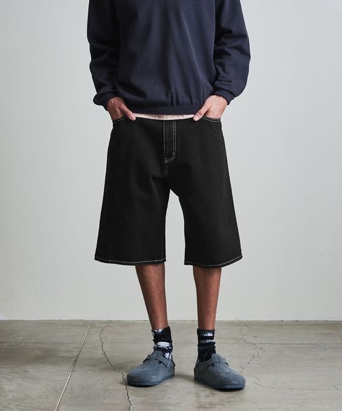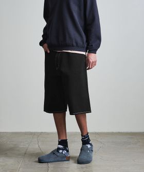 ゆとりのあるバギーシルエットに、一般的なショーツよりも長めの膝下に設定されたレングスが特徴。