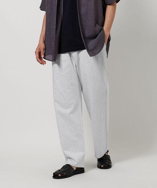 天竺で厚手のTシャツのような生地感になるため、春夏シーズンに着用しやすいスウェットパンツです。