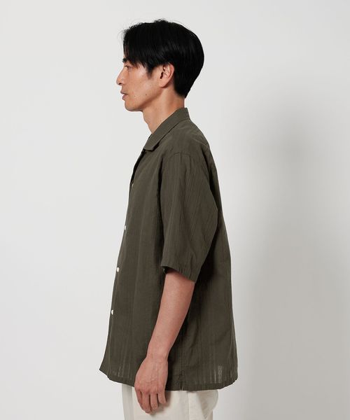 ドビー織機を使った織り柄が特徴の開襟シャツ。