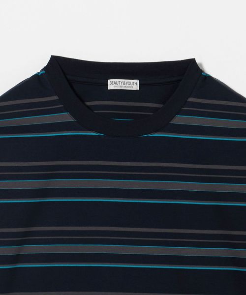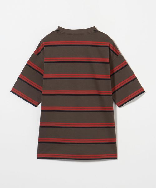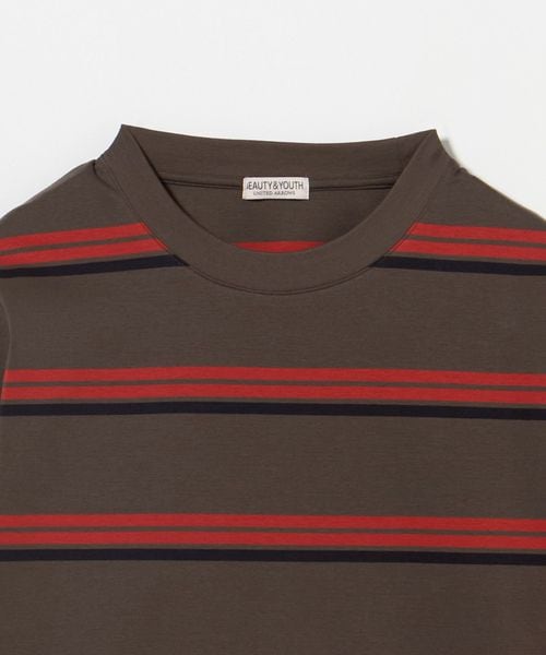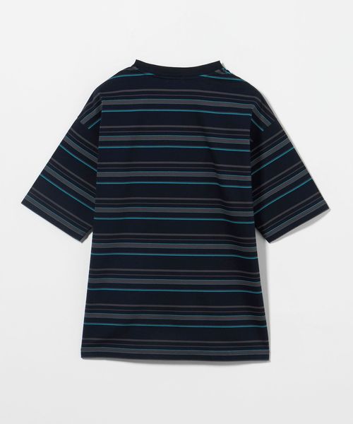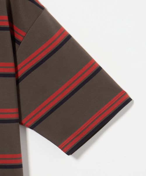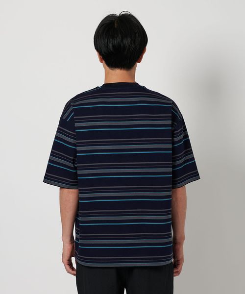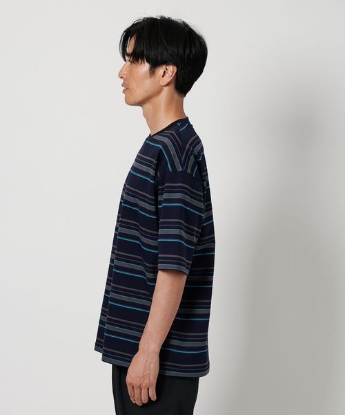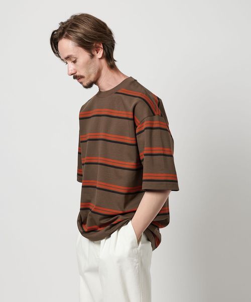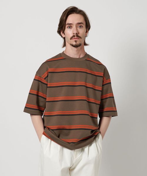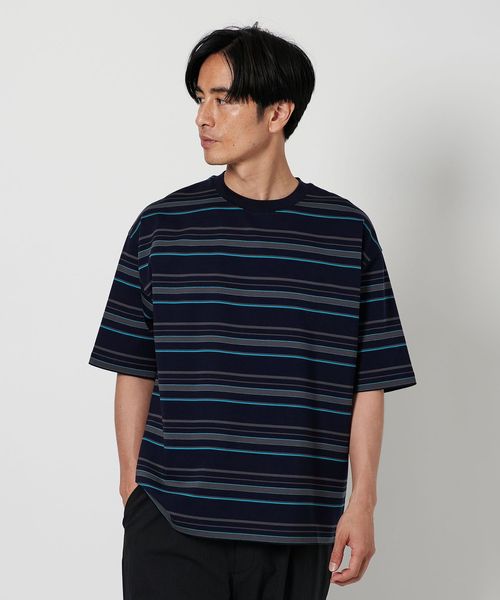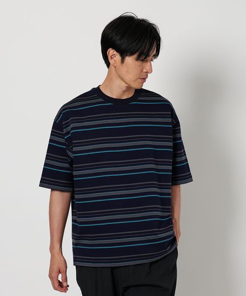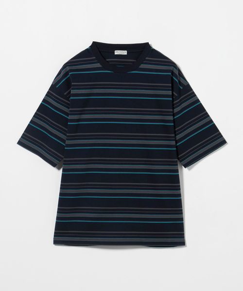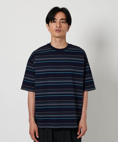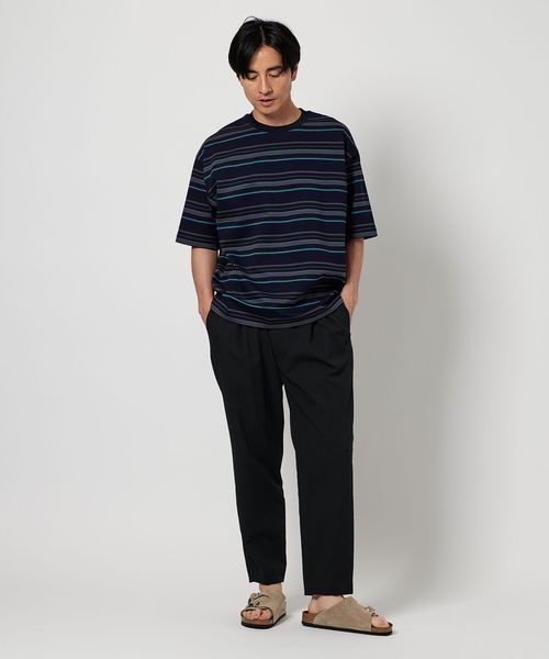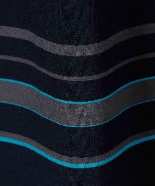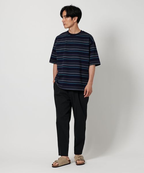 ボーダーの濃色部分とボトムスのカラーをリンクさせることで、全体に統一感のある洗練された印象に。