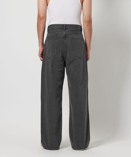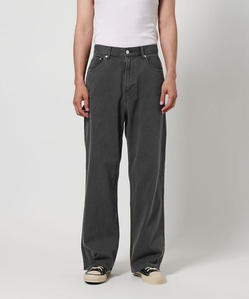 裾までストンと落ちる、やや太めシルエットの5ポケットパンツ。