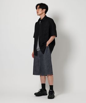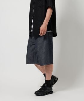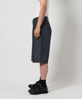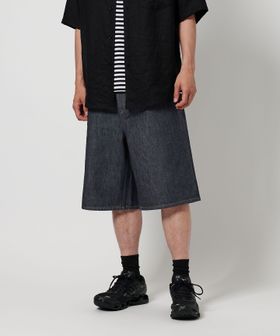 わたり・股上・裾巾を広めにとったワイドストレートシルエットのデニムショーツ。