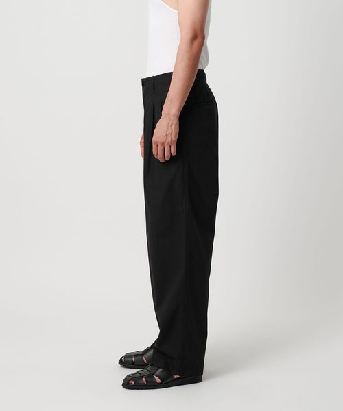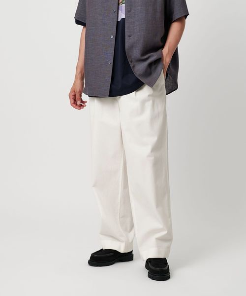 裾までストンと落ちるストレートシルエットに、腰まわりは2タックで程よいボリュームをプラス。