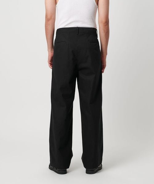 ヒザから裾にかけてテーパードをほとんど入れず、ワイドで存在感のあるラインに仕上げました。
