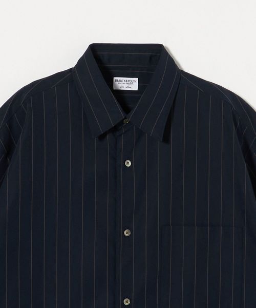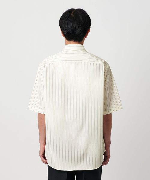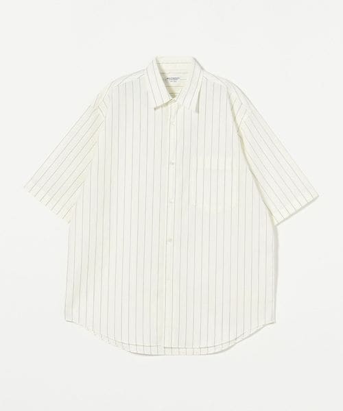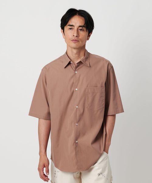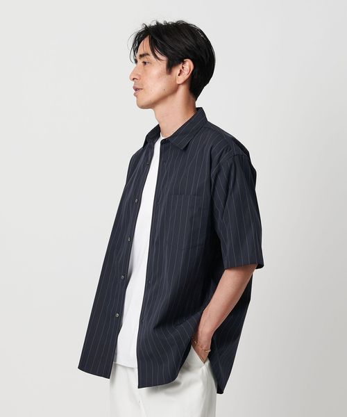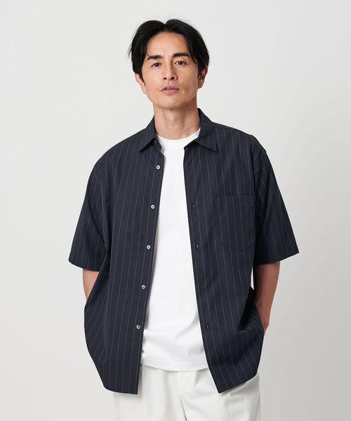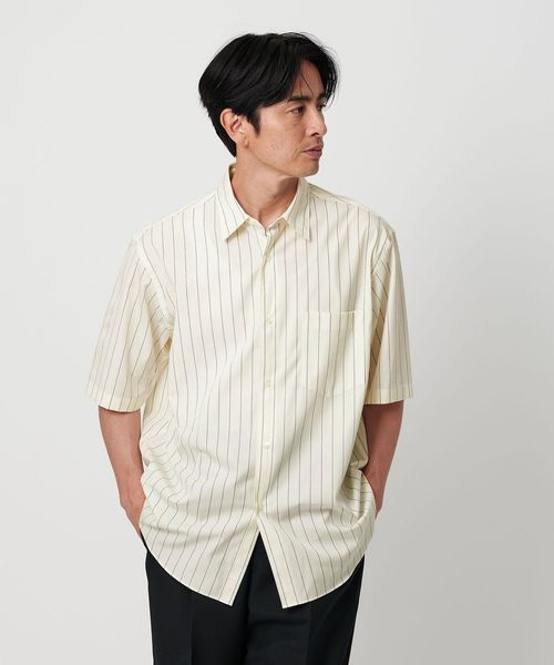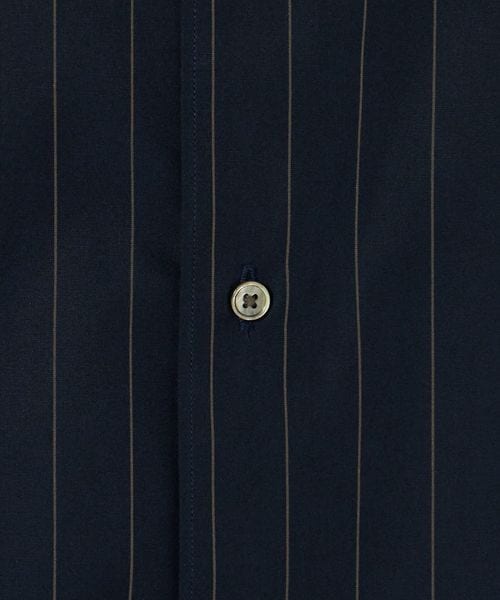 細かなステッチワークや小ぶりなボタン、狭めに設定したネック寸など、ドレスシャツの要素を残しつつ、ゆとりのあるシルエットでリラックス感をプラス。